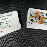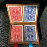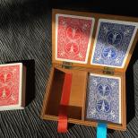 Sie öffnen das Etui und zeigen die darin befindlichen Bicycle-Kartenspiele, ein blaues und ein rotes. Sie nehmen ein Spiel heraus, schliessen das Etui wieder und führen mit dem Kartenspiel einen Trick vor (dazu wird zusätzlich eine Trickkarte geliefert). Dann sagen Sie "Jetzt werde ich Ihnen noch einen ganz tollen Trick mit dem anderen Spiel vorführen!" Dabei öffnen Sie das Etui. Zur allgemeinen Überraschung ist das zweite Kartenspiel aber spurlos verschwunden bzw. hat sich in einen netten Mikrotrick verwandelt, den Sie anschliessend auch zeigen.