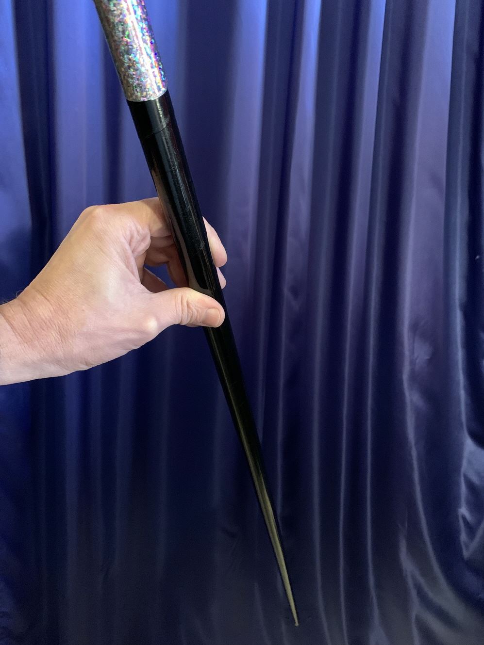 ist, dass eine Zündvorrichtung angebracht ist. So brauchen Sie die Fackel nicht extra mit einem Feuerzeug anzuzünden. Machen Sie es wie ein professioneller Zauberkünstler: Mit einem Handstreich entzündet sich die Fackel vor Ihrem Publikum und verwandelt sich dann in den schwarzen Stock (Länge ca. 120 cm).