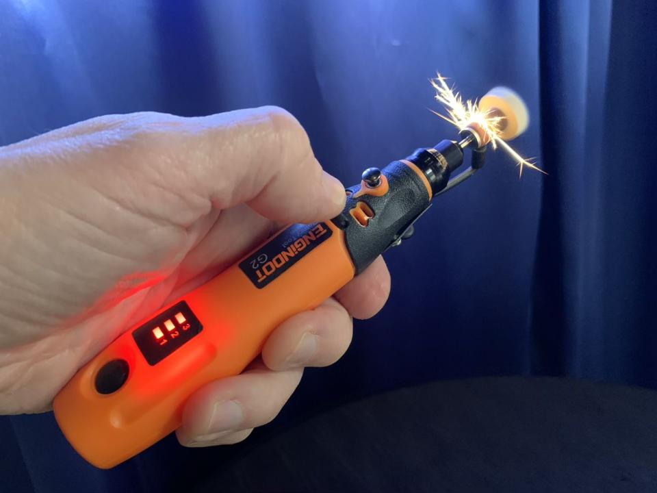 Stellen Sie sich nur vor, Sie entleihen sich einen Ring und bieten der Besitzerin eine kostenlose Politur an. Zuerst geht alles gut, doch dann fliegen plötzlich heftig die Funken. Es handelt sich hier nicht um einen kleinen, unscheinbaren Funkenflug – nein, hier geht es richtig zur Sache, und die einstellbare Geschwindigkeit von 5’000 bis zu 15’000 Umdrehungen pro Minute kann sich sehen lassen. Dem Ring passiert nichts, und Sie können ihn unversehrt zurückgeben. Die Wirkung ist allerdings enorm!