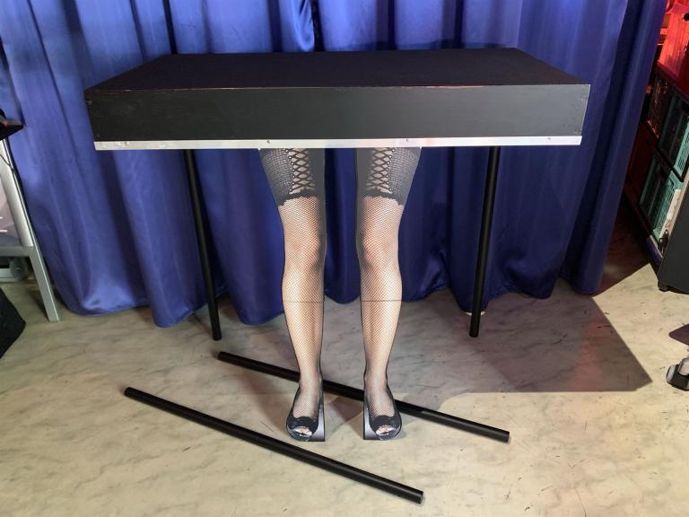 Sie erhalten den perfekt konstruierten Tisch mit einer ausgeklügelten Technik in professioneller Ausführung. Die Auslösung geschieht auf Knopfdruck (keine Fernbedienung), und Sie bestimmen den Zeitpunkt. Der Tisch ist absolut standfest, und Sie können bis 10 kg Gewicht darauf abstellen. Mit wenigen Griffen lässt sich alles im Tisch verpacken, so dass Sie für den Transport nur einen geschlossenen Koffer haben, in dem Sie sogar noch Kleinigkeiten unterbringen können. Die Damenbeine sehen realistisch aus und sind ein echter »Hingucker«. Die Tischplatte mit schwarzem Velours bezogen hat eine Grösse, von 84 × 44 cm, die aufgebaute Tischhöhe beträgt 80 cm. Für den sicheren Transport wird ein Schonbezug mitgeliefert. Auf dem Video sehen Sie die Vorbereitung und Handhabung vom Tisch. Unsere FUN TABLE Ausführung entnehmen Sie aus den Fotos.