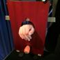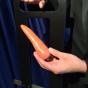Manch einem Ihrer Zuschauer wird schon ganz schwummerig, erst recht Ihrer Assistentin, denn sie ahnt (nicht zu unrecht) Fürchterliches... Doch Sie können sie besänftigen, das Gerät arbeitet einwandfrei, wie Sie es ja gerade demonstriert haben. Dann kommt der Moment, indem Sie Ihre Mitarbeiterin um ihre Hand bitten, durch die grössere Öffnung der Guillotine - versteht sich! Hat Ihr Publikum bislang Tränen gelacht, so fängt es jetzt an zu brüllen, zu toben (aus Schadenfreude, denn es steht ja nicht selbst auf der Bühne), um mit äusserster Spannung dem weiteren Geschehen zu folgen. In die kleinere Öffnung der Guillotine geben Sie jetzt eine weitere Gurke, während Ihre Zuschauerin tapfer die Hand durch die grössere Öffnung steckt.