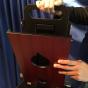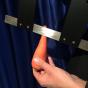 Was jetzt kommt ist aber noch viel schöner: Die Guillotine ist nach vorne hin zu öffnen, d.h. während der Vorführung nehmen Sie das Messer aus der Guillotine heraus und zeigen es einwandfrei von allen Seiten vor! Dadurch sieht Ihr Publikum, dass sich kein Duplikatmesser o.ä. in dem Apparat befindet, was Ihre Vorführung nur noch rätselhafter macht. Stabiler und sicheren Stand durch zwei eingebaute Drehfüsse.