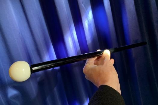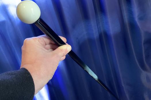 Neue, professionelle Ausführung! Sehr elegant aussehend und heute noch genauso aktuell wie vor 20 Jahren! Zu den Klängen der Musik tanzt der Stock und schlägt die tollsten Figuren. Sie erhalten von uns den ca. 90 cm langen, schwarzen Stock mit weissen Enden, der auf halbe Länge zusammen geschoben werden kann, vorführbereit in einer stabilen Aufbewahrungsbox.Der Stock ist aus Carbonfaser und daher ausgesprochen robust, aber trotzdem leicht. Zusammen- schiebbar mit VERSENKBAREN Kevlarfaden. Inkl. Manuskript!