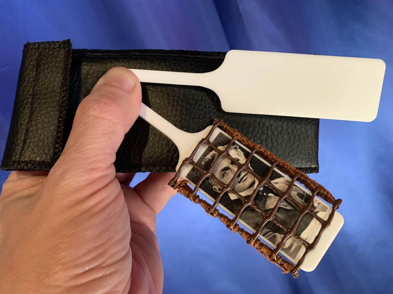 Sie erhalten zwei wunderschöne Kellen aus weissem Plexiglas-Acryl, eine Abbildung vom Entfesselungskünstler Houdini, inklusive das "Gefängnis" zum Darüberstülpen und das Aufbewahrungsetui.