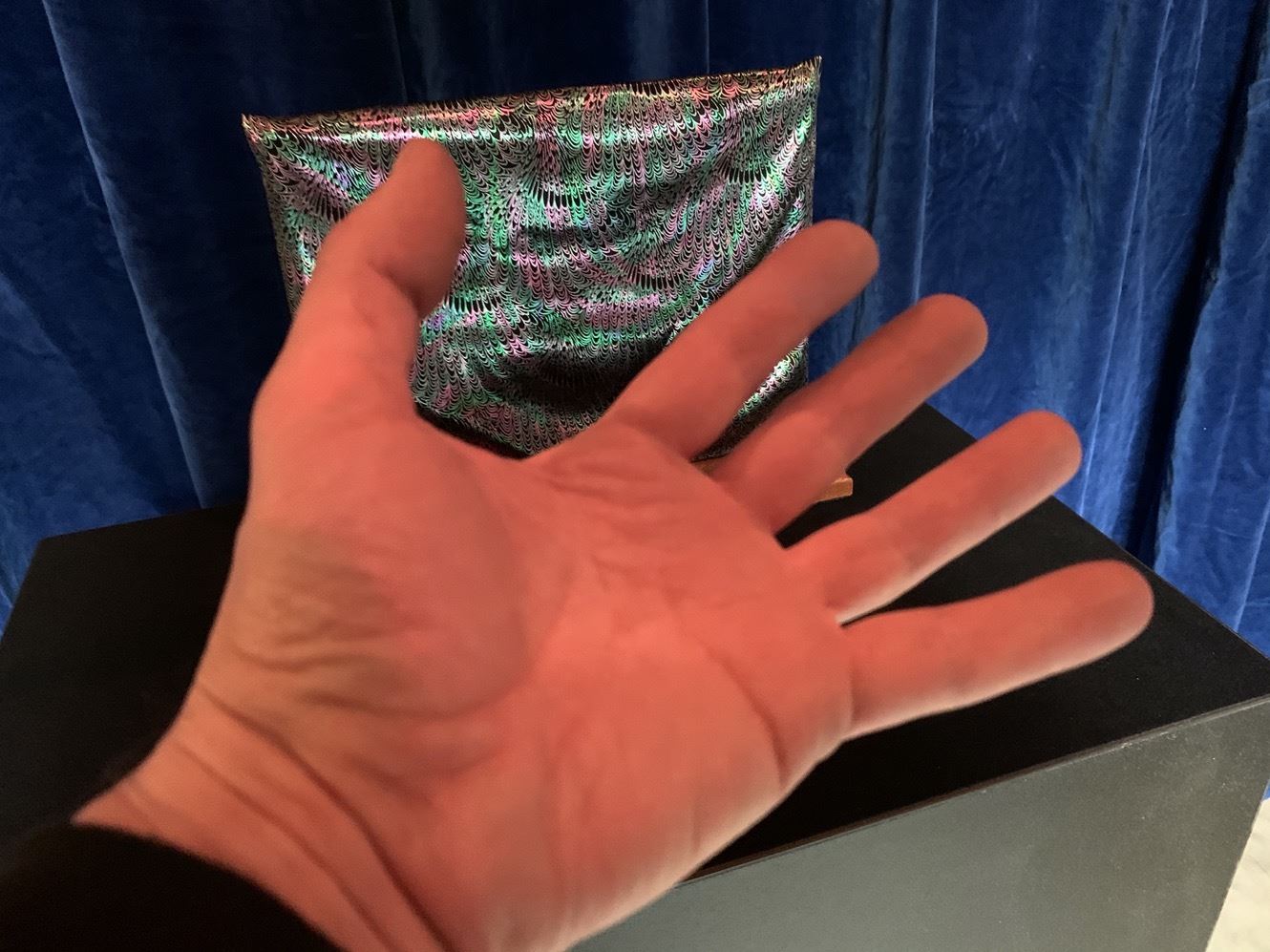 Wird der Stoffbeutel abschließend von den Metallstangen abgezogen, erkennt das Publikum, dass der Ring auf der Mitte des Samurai-Schwertes zwischen den beiden Holzposten hängt, und der Zuschauer bestätigt, dass es sich tatsächlich um seinen Ring handelt! (inkl. englische Beschreibung).