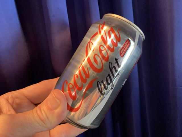 Nachdem der mittlere Teil zurückgeschoben und die Metallplatten entfernt worden sind, kann die herausgenommene Coca-Cola-Dose geöffnet und getrunken werden.