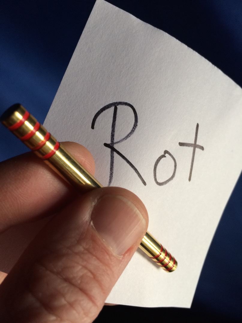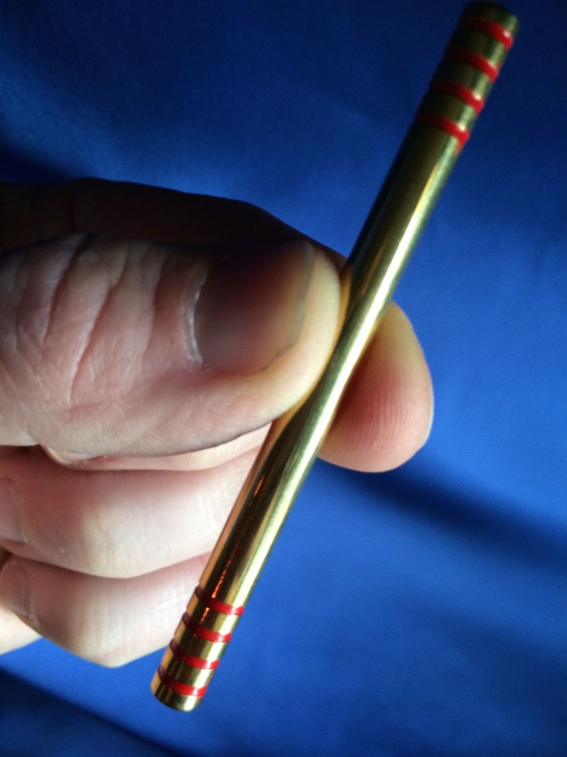 Das ist die LUXUSAUSFÜHRUNG der bekannten MENTALSTICKS! Wunderschöne Ausführung in der eleganten STOFFTASCHE! Der Mentalist zeigt fünf verschiedenfarbige, "Sticks" aus goldpolierten Messing und einen verschraubbaren, goldpolierten Messingbehälter. Während sich der Vorführende abwendet, gibt ein Zuschauer einen der Sticks in die Röhre, verschliesst diese und versteckt die restlichen Sticks in der Stofftasche. Sofort ist der Magier in der Lage, die korrekte Farbe der Sticks in der Röhre zu nennen! Alles ist untersuchbar. Das Kunststück kann sofort wiederholt werden. Ein wirklich cleveres Trickprinzip!