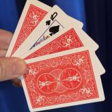 Sie zeigen Ihren Zuschauern ein kleines Etui und erklären ihnen, dass sich darin vier Spielkarten-damen befinden, je eine pro Kartenfarbe.Ein Zuschauer wird dann gebeten, eine der vier Damen zu nennen. Sofort nehmen Sie alle Karten aus dem Etui.