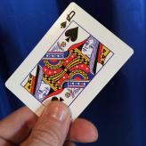 Sie fächern sie auf, und die Zuschauer können sehen, dass die gewählte Dame die Einzige ist, die mit der Bildseite nach oben zwischen den anderen liegt. Wenn diese Dame nun aus dem Fächer genommen und umgedreht wird, sehen die Zuschauer, dass sie auch die Einzige mit einer andersfarbigen Rückseite ist. Selbstverständlich ist im Etui keine Karte zurückgeblieben.Keine Fingerfertigkeit notwendig.
