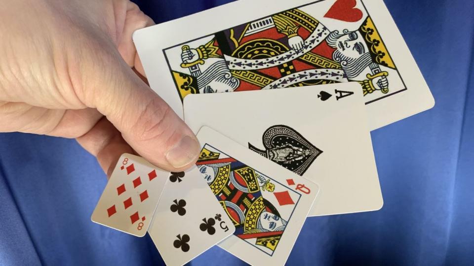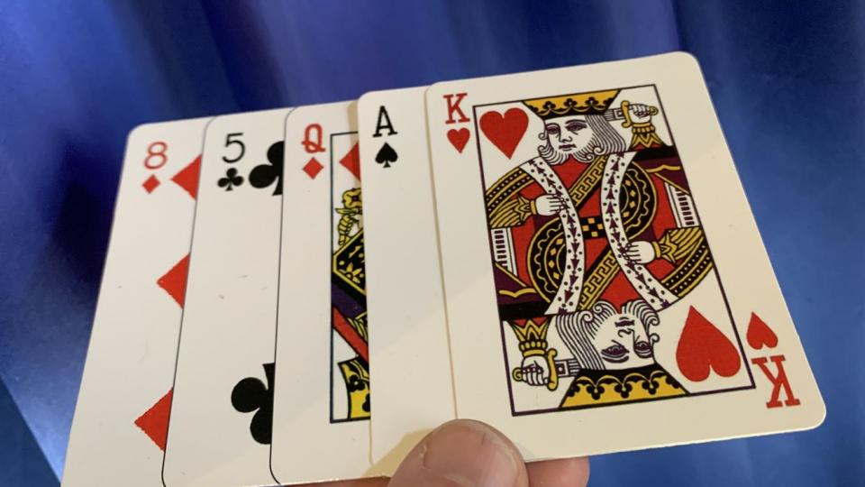 Sie zeigen Ihren Zuschauern 5 Karten und weisen sie darauf hin, dass dies eines der höchsten Blätter beim Pokern ist. Dann fragen Sie, welches die höchste Karte ist. Ihre Zuschauer werden antworten "Der König".