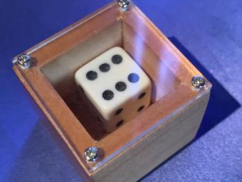 Sie zeigen einen Würfel, der sich in einem kleinen Holzkästchen (4 x 4 x 4 cm) befindet mit obendrauf einer durchsichtigen Plexiglasplatte. Durch diese Platte kann man den Würfel und somit auch die oben liegende Augenzahl sehen. Ein Zuschauer bekommt das Kästchen und soll nun versuchen, den Würfel durch Schütteln in eine andere Lage bzw. mit einer anderen Augenzahl zu bringen. Es gelingt ihm natürlich nicht, denn das Ganze ist so eng gefertigt, dass sich der Würfel nicht bewegen lässt. Sie pusten jetzt aufs Kästchen und schon haben sich die Position des Würfels bzw. die Augenzahl verändert! Das kann natürlich auch wiederholt werden. Ein ganz feines Präzisionskunststück, mit dem Sie die Leute zum Verzweifeln bringen können. Sehr empfehlenswert!