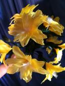 Diesen Effekt müssen Sie gesehen haben! Schön, verblüffend und farbenfroh! Sie halten ein 60 x 60 cm grosses schwarzes Tuch an einem Zipfel. Dann werfen Sie eine Handvoll grosser weisser Papierpunkte in die Luft und halten das Tuch in den Punkteregen. Sie bewegen es hin und her, und wie durch Zauberei befinden sich die weissen Punkte nun fest rundum auf dem Tuch und fallen trotz Schütteln nicht ab! Doch das ist nicht alles: Sie greifen jetzt unter das Tuch und produzieren ein wunder-schönes grosses Federblumenbouquet mit zehn gelben Blüten! Dieser Höhepunkt ist schon fast perfekt. Doch nun streichen Sie mit dem gelben Blumenstrauss einmal über das schwarze, weissgepunktete Tuch, und im gleichen Moment färbt es sich in ein gelbes mit schwarzen Punkten! Doch auch das ist noch nicht alles: Aus dem gelben Tuch mit den schwarzen Punkten produzieren Sie blitzartig einen gelben Schirm mit schwarzen Punkten. Danach falten Sie das gelbe Tuch mit den schwarzen Punkten klein zusammen und es verwandelt sich in einen grossen gelben Blumenstrauss! Ohne komplizierte Handhabung! Umringt leicht und elegant vorzuführen! Im Gegensatz zu einigen anderen Punktetüchern und -schirmen sind hier die Punkte aufgedruckt. Abfallen, Vergilben oder Lösen der Punkte gibt es selbst nach Jahren nicht. Dieses Kunststück ist ein Knaller und funktioniert wie von selbst. Sie werden immer Freude daran haben! Sie erhalten den PUNKTESCHIRM komplett mit einem schwarzem und einem gelben Punktetuch, zwei Blumenbouquets, einem gelben Punkteschirm, einem Pack mit weissen Konfetti und einer ausführlichen Gebrauchsanleitung.