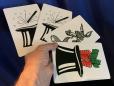 Was hat der Hase jetzt im Sinn? Der liebenswerte Hase, der während dieser Routine sowohl den Zuschauern als auch Ihnen etwas gar clever vorkommt, beweist sich letztendlich als Publikumsliebling. Sie gewähren den Zuschauern Einblick in vier Jumbo-Bicycle-Karten. Auf zwei dieser Karten sieht man einen Zylinderhut, aus dem ein Zauberstab herausragt. Auf der dritten Karte befindet sich der liebenswerte Hase, und die vierte Karte zeigt wieder einen Zylinderhut, aber diesmal ragt ein Bündel Karotten aus ihm heraus. Nun sagen Sie den Zuschauern, der Hase müsse sich die Karotten verdienen. Er muss sich dafür auf ein kleines Spielchen einlassen, und Sie legen die Karte mit den Karotten erst mal beiseite. Sie drehen den Hasen und eine Zylinderkarte um. Die Zuschauer sehen jetzt zwei blaue Rückseiten und einen Zylinder. Sie sollen nun raten, wo der Hase sich versteckt, aber immer wieder wird falsch geraten. Schliesslich ist klar, dass der Hase sich gar nicht unter den drei Karten befindet, und jeder meint, er müsse auf der vierten Karte sein, die daneben liegt. Und tatsächlich sieht man darauf den Hasen, aber er sitzt im Zylinderhut und ist gerade dabei, die letzte Karotte Genüsslich zu verspeisen! Eine tolle Sache für Kinder und Erwachsene. Kinderleicht vorzuführen. Jumbokarten im Format 12 x 18 cm aus stabilem Karton, siebbedruckt und daher unverwüstlich. Perfekte, sehr dekorative Kartenbilder im Comic-Stil. Diesen schlauen Hasen wird jedes Publikum sofort ins Herz schliessen!