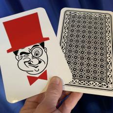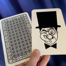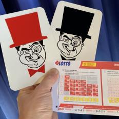 Es geht ums Gewinnen. Was passiert? Sie zeigen zwei Riesenkarten in der Grösse 12 x 18 cm. Auf der einen Karte ist ein Herr OTTO mit einem rotem Zylinder abgebildet, auf der anderen sein Bruder TOTO mit einem schwarzen. Sie drehen die Karten mit der Bildseite nach unten und bitten einen Zuschauer, den roten Zylinder im Auge zu behalten, denn Rot gewinnt! Doch wo gerade noch der rote Zylinder war, ist nun der schwarze. Die Vorführung wird wiederholt. Egal, wie sich der Zuschauer auch anstrengt, es wird ihm nicht gelingen! Zwischendurch zeigen Sie immer wieder, dass Sie wirklich nur eine schwarze und eine rote Karte haben.