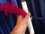 In einem Zylinder stehen fünf farbige Federbüsche in pink, orange, lila, gelb und grün. Sie zeigen dem Publikum eine kleine Papierrolle von allen Seiten und öffnen Sie dann als Beweis, dass es sich um einen gewöhnlichen, zu einer Rolle geformten Papierbogen handelt. Sie formen den Bogen wieder zu einer Röhre und schieben nun von oben nach unten den ersten, pinkfarbigen Federbusch hindurch. Er kommt unten in der gleichen Farbe wieder zum Vorschein. Beim zweiten Versuch ziehen Sie ihn jedoch blütenweiss aus der Röhre. Der Federbusch entschwindet nie vollständig den Blicken der Zuschauer. Anfang oder Ende bleiben immer sichtbar! Stellen Sie den weissen Federbusch wieder in den Zylinder und nehmen Sie den orangefarbigen zur Hand. Nachdem Sie ihn mehrmals von oben nach unten durch die Röhre gezogen haben, wird er beim letzten Mal plötzlich wieder pinkfarbig. Zeigen Sie die Röhre wieder leer vor und nehmen Sie den nächsten, den lilafarbigen Federbusch zur Hand, den Sie ebenfalls ein- oder zweimal durch die leere Röhre ziehen. Anschliessend legen Sie ein rotes Tüchlein über die Röhre und schieben es mit Hilfe des Federbusches hindurch. Das Tüchlein kommt auf der anderen Seite wieder zum Vorschein. Wird aber der Federbusch ganz herausgezogen, hat er sich schlagartig rot gefärbt. Und so geht es weiter: Der nächste Federbusch färbt sich gelb, dann folgt eine Verwandlung zu grün, und schliesslich erscheint sogar ein mehrfarbiger Federbusch! Diese Färbung lässt sich sehr individuell gestalten. Sie haben insgesamt 6 solche Federbüsche zur Verfügung (einer dient als Reserve). Als Stativ eignet sich hervorragend unser KLAPPZYLINDER oder unser ZAUBERKOFFER, den Sie separat dazu bestellen können. Darin kommen die Federbüsche besonders schön zur Geltung!