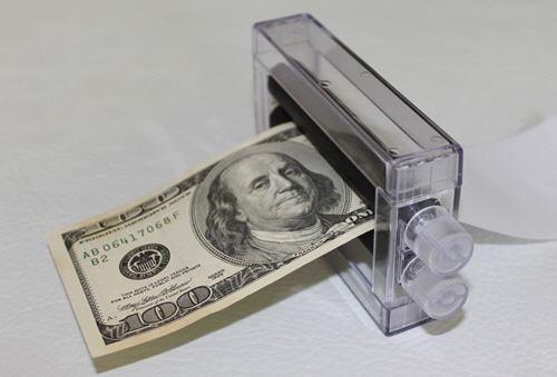 "Sehen Sie, liebe Freunde, wenn ich knapp bei Kasse bin, drucke ich mir mein Geld einfach selber." Mit diesen Worten holen Sie aus Ihrer Geldbörse ein Stück weisses Papier. Gleichzeitig stellen Sie Ihre "GELDDRUCKMASCHINE MINI" auf den Tisch und schieben das Papier von hinten in die Maschine. Dann drehen Sie eine der Druckwalzen. Das weisse Papier wird in die Maschine gezogen und am anderen Ende kommt ein ECHTER Geldschein heraus, den Sie sofort untersuchen lassen können. Es lässt sich jede beliebige Währung drucken! Alles funktioniert automatisch und kann sofort und ohne Fingerfertigkeit vorgeführt werden. Die "GELDDRUCKMASCHINE MINI" kann also von nun an Ihr eigenes, echtes Geld drucken! Freuen Sie sich jetzt schon, wenn Ihre Freunde den Schein ans Licht halten oder mit einem Geldscheintester prüfen: Er ist wirklich echt!