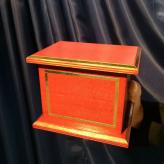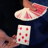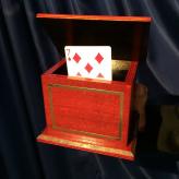 Ein Zuschauer wählt frei (keine Force!) eine Spielkarte. Die Karte kommt zurück in das Spiel. Dann zeigen Sie eine dekorative MAHAGONI HOLZ SCHATULLE vor, öffnen den Deckel und geben das Kartenspiel hinein. Sie sprechen eine magische Beschwörungsformel und vor den Augen der Zuschauer hebt sich der Deckel der Schatulle langsam an und eine Karte steigt aus der Schatulle empor.