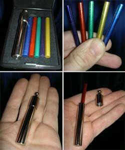 Würden Ihre Zuschauer wissen, dass Ihnen wieder einmal eine feinmechanische Meisterleistung sämtliche Arbeit abnimmt, wären sie vermutlich enttäuscht, dass ein solches Mentalmirakel so einfach ist. Aber da es sich, wie gesagt, um Präzisionsarbeit handelt, werden Sie s niemals herausfinden. Sie zeigen ein hochglanzvernickeltes Röhrchen und einen dazu passenden Deckel, die Sie beide aus einem eleganten Schmucketui entnehmen. Ebenfalls im Etui enthalten sind noch fünf verschiedenfarbige, eloxierte Alluminiumstäbchen. Der Zuschauer wählt hinter Ihrem Rücken eines aus, gibt es ins Röhrchen, dann wird der Deckel aufgesetzt. Die restlichen Stäbchen steckt er ein, so dass Sie keine Chance haben, irgendwelche Rückschlüsse zu ziehen, welche Farbe das Stäbchen hat, das sich im Röhrchen befindet. Trotzdem können Sie die Farbe, je nach Vorführstil mental-geheimnisvoll oder mit einem Augenzwinkern, sofort nennen. Wenn Sie wollen, können Sie den Trick sofort mit einer anderen Farbe wiederholen. Wenn s sein muss, auch mehrere Male hintereinander, ohne Gefahr zu laufen, das Geheimnis zu verraten.