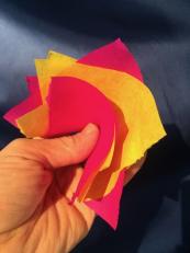 Sie reissen zwei Bögen Seidenpapier auseinander und geben die eine Hälfte einem Zuschauer; den Rest behalten Sie selbst. Beide zerreissen nun ihr Papier weiter in kleine Stücke. Danach sagen Sie: "Nun wollen wir das Papier wieder zusammenfügen." Der Zuschauer hat aber keinen Erfolg damit. Also nehmen Sie wieder alle Stücke an sich und verwandeln sie in einen Papierhut, den Sie dem Zuschauer dann aufsetzen.