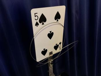 Sie zeigen einen unpräparierten Ballon und blasen ihn auf. Er wird dann zwischen zwei Drahtringe gelegt, die auf einem Stativ befestigt sind. Nun wird ein Zuschauer gebeten, eine Riesenkarte aus einem Riesenkartenspiel zu wählen, sie zu signieren und dann ins Spiel zurückzugeben. Das Spiel kommt auf ein silbernes Metalltablar, das sich am Fusse des Stativs befindet. Plötzlich platzt der Ballon und die SIGNIERTE Riesenkarte des Zuschauers erscheint darin und kann sofort untersucht werden. Ein sensationeller Effekt, jetzt NEU MIT RIESENKARTEN! Sie erhalten beste Feinmechanik, absolut funktionssicher und ganz einfach zu bedienen. Eigentlich zaubert das Requisit für Sie. Sie brauchen sich nur auf die Show zu konzentrieren. Für Salon und Bühne geeignet. Wollen Sie gleichzeitig ein SAMMLERSTÜCK und ein sehr EFFEKTVOLLES Kartenkunststück erwerben, so entscheiden Sie sich für dieses Präzisionsrequisit! Wir liefern Ihnen den RIESENKARTENBALLON mit Riesenkarten und deutscher Gebrauchsanleitung.