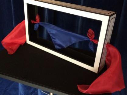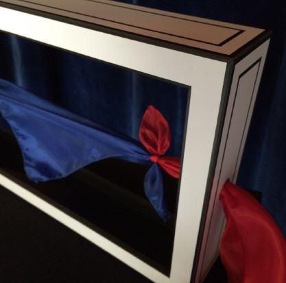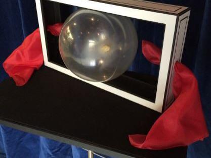 Mit diesem ausgefallenen Requisit erwerben Sie einen Blitzeffekt, wie er herrlicher nicht sein könnte. Alles, was Sie dazu benötigen, ist ein weissbelegter Rahmen sowie drei Tücher und ein Luftballon. Zwei Tücher von gleicher Farbe werden durch die beiden Bohrungen links und rechts des Rahmens gesteckt, während in den Rahmen ein aufgeblasener, glasklarer Luftballon geklemmt wird. Lassen Sie jetzt ein anderes farbiges Tuch verschwinden, anschliessend den Luftballon platzen und blitzschnell er-scheint dieses Tuch zwischen den beiden anderen verknotet im Rahmen.