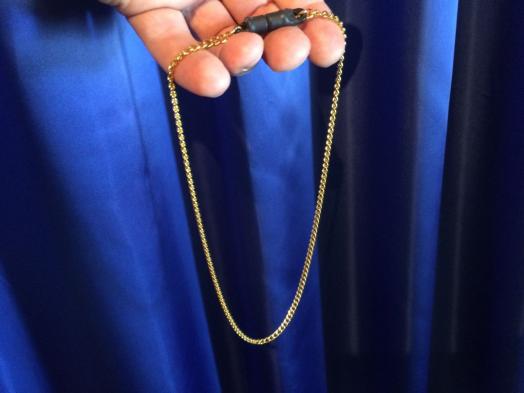 Ein Kugelschreiber verwandelt sich blitzschnell in eine schöne, goldene Halskette, die einer Zuschauerin sofort um den Hals gehängt werden kann und daher auch genau überprüfbar ist. Oder ein Kugelschreiber verwandelt sich in einen Bleistift. Auch direkt vor den Augen der Zuschauer können Sie den Kugelschreiber verschwinden lassen. Sehr einfach vorzuführen! Sie erhalten Kugelschreiber und Halskette in einer perfekten, schönen Ausführung, inklusive deutscher Beschreibung.