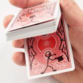Sie zeigen ein rotes Poker-Kartenspiel und lassen einen Zuschauer VOLLKOMMEN FREI eine Karte nennen. Dann zeigen Sie, dass auf der Rückseite des Spiels ein Männlein gemalt ist. Beim Durchrauschen der Karten sieht man in einer Art Daumenkino, wie das Männlein in einen Zylinder greift, eine Spielkarte herausholt, sie umdreht und es ist tatsächlich die Karte des Zuschauers. Das Kunststück kann sofort mit einer anderen Karte wiederholt werden. CARD TOON ist die SENSATION aus den USA. JEDER, der dieses Kunststück gesehen hat, will es haben. Es ist einfach entzückend und überaus verblüffend. Das Spiel wurde ganz speziell gedruckt eine Meisterleistung der Druckkunst. Sie bekommen dazu eine umfangreiche Beschreibung mit vielen Abbildungen. Keine Fingerfertigkeit notwendig.