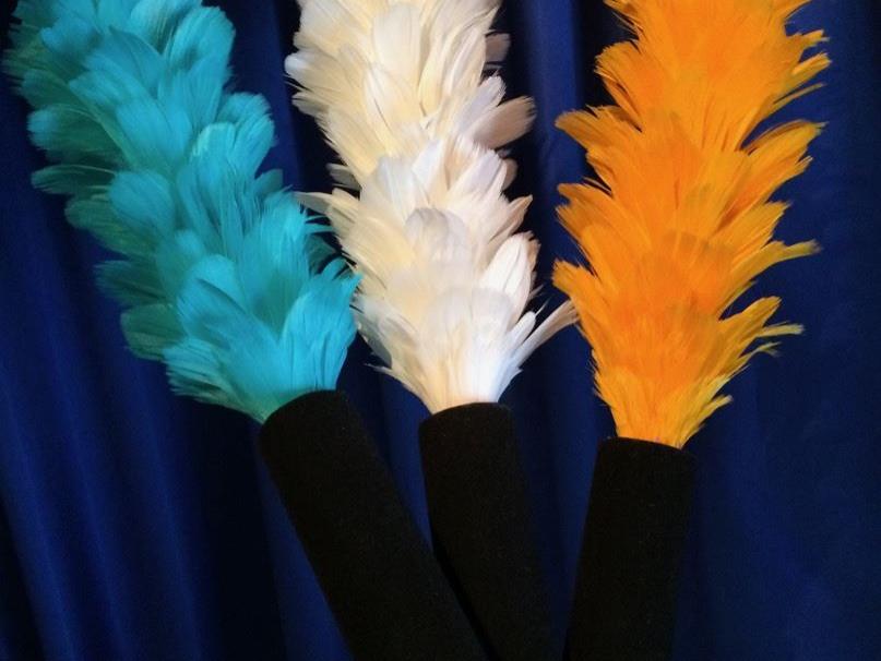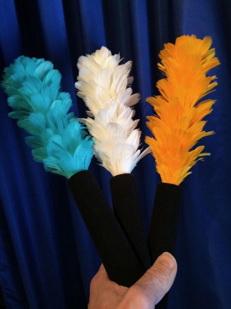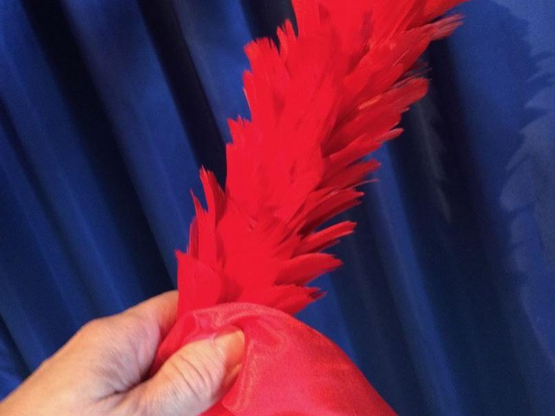 Kann man die Federbuschfärbung weiterentwickeln? Ja, und das NEUE SYSTEM ist genial! Als ich die Vorführung das erste Mal sah, war ich platt und hatte keine Erklärung dafür. Sie zeigen ein kleines Seidentuch (TÜCHERSPRUDEL), und plötzlich entfaltet es sich und es quellen immer neue Tücher hervor. Es sieht aus, als würde sich eine geschlossene Rosenblüte im Zeitlupentempo öffnen, und es erscheinen nacheinander bis zu 6 verschiedenfarbige Seidentücher im Format 30 x 30 cm. Jetzt nehmen Sie ein oranges Tuch vom TÜCHERSPRUDEL und streichen damit einmal über den türkisblauen Federbusch, der dann orange wird. Dann nehmen Sie ein violettes Tuch und streichen einmal über den gelben Federbusch, der dannn violett wird. Der dritte weisse Federbusch färbt sich anschliessend durch Darüberstreichen mit einem roten Seidentuch in einen roten Federbusch. Zum Schluss können Sie die drei Federbüsche wieder in einen türkisblauen, einen gelben und einen weissen zurückverwandeln! Sie erhalten ein qualitativ sehr hochwertiges Requisit made in Switzerland in TOP AUSFÜHRUNG! Die Vorführung ist extrem einfach und erfordert keine Fingerfertigkeit. Ein "Druck" aufs "Knöpfchen" und schon ist es passiert! Die Länge der Federbüsche beträgt 50 cm und der Durchmesser 10 cm. Inkl. TÜCHERSPRUDEL mit 6 Seidentüchern 30 x 30 cm und einer deutschen Gebrauchsanleitung.