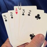 Das Thema "Find the Lady" mit einem wirklich überraschenden Ende. Ihr Zuschauer schafft es nicht, auch nach mehrmaligem Probieren, eine bestimmte Karte mit einer Büroklammer zu markieren.