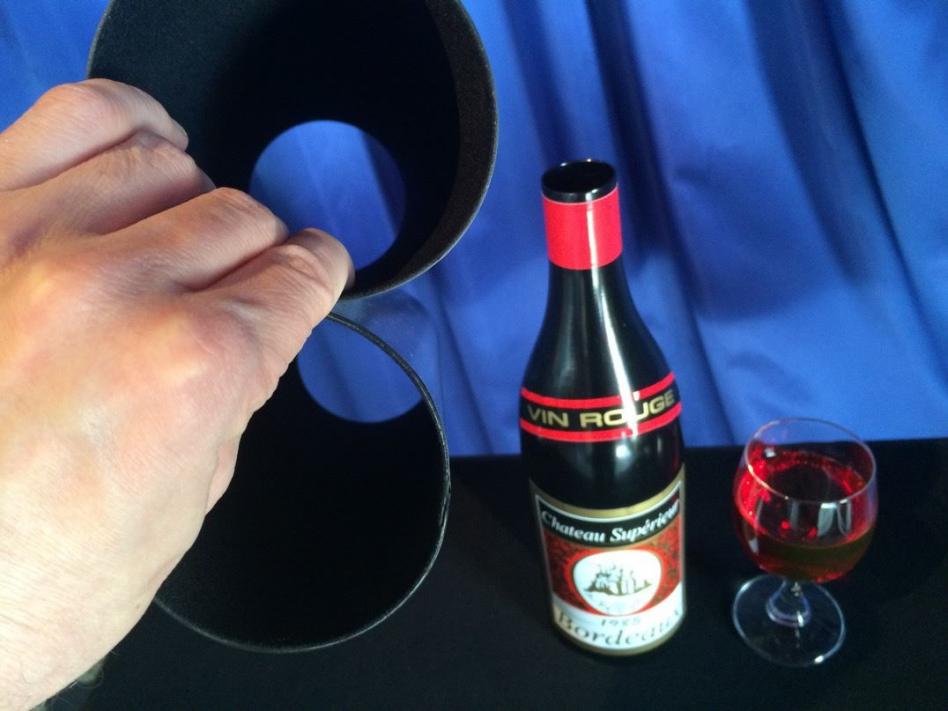 Dies sind die berühmten Trickflaschen "Türkenfeuer" die über lange Jahre nicht lieferbar waren. Dies ist nicht irgendeine Flaschenwanderung, dies ist die Version mit der berühmten Ventilflasche. Hier können Sie das gefüllte Glas austrinken... und wie von Zauberhand ist es wieder gefüllt. Was genau macht die Ventilflasche? Die Ventilflasche ist ein einmaliges Highlight und macht den Unterschied zu anderen Flaschenwanderungen deutlich, da dies mit normalen Flaschenwanderungen nicht möglich ist. Sie füllen in die Flasche eine bestimmte Menge an Flüssigkeit und können diese, mit einem kleinen Handgriff, in die leeren Gläser leiten. Dies gibt der Vorführung noch einen Zusatz-Kick. Sie trinken die Gläser leer und doch sind diese immer wieder gefüllt. Was passiert nun: Auf dem Tisch sehen Ihre Zuschauer ein Flasche Wein, ein gefülltes Glas und zwei dekorative Röhren. Sie geben die beiden Röhren jeweils über Glas und Flasche. Nun machen Sie eine magische Bewegung und behaupten das Glas und Flasche den Platz getauscht haben. Sie heben die Röhren ein kleines Stück an (aber so das Ihre Zuschauer nicht den Inhalt sehen können) und sagen:"Ja, das hat ja wunderbar geklappt", "Nun kommt aber das Schwierigste, Glas und Flasche müssen wieder den Platz tauschen". Sie machen erneut eine magische Bewegung über den Röhren und heben diese hoch. Dabei machen Sie ein überglückliches Gesicht. Natürlich ist absolut nicht passiert, was das Publikum Sie nun auch wissen läßt. Schauen Sie verdutzt und sagen:"Ich glaube das war zu schnell für Sie". Aber das macht nichts, ich zeige es Ihnen gerne nochmals langsam. Sie geben wieder die Röhren über Glas und Flasche und machen Ihre berühmte magische Geste. Dann heben Sie die Röhren hoch und nun haben Glas und Flasche tatsächlich den Platz getauscht. Sie heben das gefüllte Glas, prosten Ihren Zuschauern zu und trinken es in einem Zug aus. Erneut kommen beide Röhren über die Gegenstände. Sagen wir links ist die Flasche und rechts das Glas. Verschieben Sie beide Röhren (samt Inhalt). Wenn die Röhren hochgehoben werden ist trotzdem wieder links die Flasche und rechts das Glas zu sehen (welches zudem nun wieder gefüllt ist). Das Glas trinken Sie schnell aus. Wieder wandern Glas und Flasche hin und her und abermals ist das vorher geleerte Glas wieder voll. Zwischenzeitlich können Sie auch die Röhren leer zeigen. Die Flaschenwanderung bietet beste Unterhaltung für Ihr Publikum, egal ob Sie nun mit Musik zaubern oder lieber sprechen. Sie erhalten eine mehrseitige deutsche Anleitung und die sauber gearbeiteten Requisiten. Lieferung im stabilen Karton.