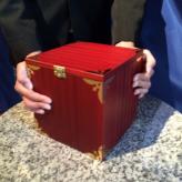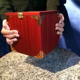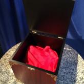 Sie behaupten nun, den Zuschauer zu beeinflussen. Das Seidentuch soll so schwer werden, dass er es nicht mehr anheben kann. Dazu geben Sie es in die Box und schliessen den Deckel. Er soll nun die Box anheben. So sehr er es aber auch versucht, es wird ihm nicht gelingen! Er kann die Box nicht einen Millimeter anheben. Diese scheint plötzlich ein Gewicht von mehreren Tonnen zu haben.