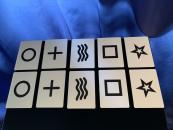 Dieser Effekt eignet sich vorzüglich bei Hochzeiten oder immer dann, wenn ein Paar im Vordergrund stehen soll. Sie zeigen den Zuschauern eine durchsichtige Tafel, auf der 10 Symbolkarten angebracht sind. Mit diesen Karten versuchen Sie nun eine gedankliche Beeinflussung durchzuführen. Dazu entfernen Sie alle 10 Karten von der Tafel. Fünf Karten erhält ein Zuschauer, die anderen fünf behalten Sie selbst. Der Zuschauer wird nun gebeten, seine Karten durcheinanderzubringen. Unterdessen befestigen Sie Ihre eigenen fünf Karten auf einer Tafelseite mit den Rückseiten zum Publikum. Dann werden die fünf Karten des Zuschauers an der gegenüberliegenden Seite der Tafel angebracht. Er bestimmt selbst, in welcher Reihenfolge dies geschehen soll. Wird die Tafel nun umgedreht, erscheinen die Karten auf beiden Seiten in derselben Reihenfolge! Die Tafel ist aus Plexiglas und durchsichtig. Sie hat eine Grösse von ca. 43,5 x 20 cm. Die Bicycle-Karten sind aus Plastik. Alles wird komplett in einem Karton geliefert, und Sie können dieses Wunder bereits nach kürzester Zeit vorführen!