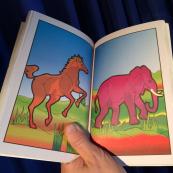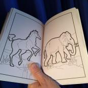 Sie zeigen ein Malbuch mit einem furchterregenden Drachen auf der Frontseite. Beim ersten Durchblättern des Buches sind zunächst alle Seiten leer. Beim zweiten Durchblättern kommen auf allen Seiten verschiedene schwarzweisse Tierfiguren zum Vorschein, und beim dritten Durchblättern erscheinen die gleichen Figuren in Farbe zur grossen Verblüffung des Publikums!