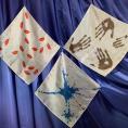 Der Zauberkünstler zeigt drei verschmutzte, ehemals weisse Seidentücher. Auf dem einen ist ein blauer Farbklecks zu sehen, auf dem zweiten befinden sich rote Lippenstiftabdrücke, und das dritte scheint nach einer Autoreparatur zum Abwischen der Hände benutzt worden zu sein!