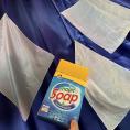 Einen Moment später zieht er drei makellos weisse, perfekt saubere Seidentücher aus dem Waschpulverkarton heraus.