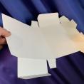 Etwas unbeholfen steht der Magier nun mit der Schachtel in der Hand da – das Publikum ist überzeugt: Die schmutzigen Tücher müssen sich noch darin befinden! Nach einigem Zögern öffnet er die Schachtel vollständig, um zu zeigen, dass darin nichts versteckt ist. Die Schachtel wird komplett auseinandergefaltet – nur noch ein flaches Kartonstück bleibt übrig, das von vorne und hinten vorgezeigt werden kann.