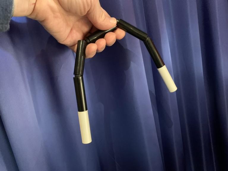 Sie geben einem Zuschauer diesen Zauberstab in die Hand; der Stab verwandelt sich augenblicklich und hängt schlapp herunter! Sichtlich empört nehmen Sie den Stab zurück, pusten darauf, und er ist wieder gerade und fest! Sobald ihn aber der Zuschauer übernimmt, hängt er wieder abgeschlafft nach unten. Bewährter Gag für Kinder und Erwachsene, ein todsicherer Lacher! Und der Clou: Ein NEUES ZWISCHENSTÜCK erlaubt es, den Stab bis zu seinem Einsatz problemlos als normalen Zauberstab zu verwenden, ohne ihn irgendwie besonders festhalten zu müssen.