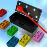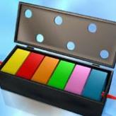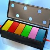 Die Würfel kommen in das Kästchen zurück und werden mit einer Kunststoffnadel gesichert. Durch die Löcher im Deckel kann man die Farbwürfel jederzeit erkennen.