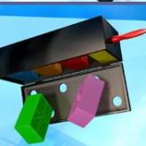 Dann drehen Sie das Kästchen auf den Kopf. Der Deckel öffnet sich und es fallen plötzlich 2 Farbwürfel heraus. Es sind genau die Farben, die sich der Zuschauer vorher ausgesucht hat.