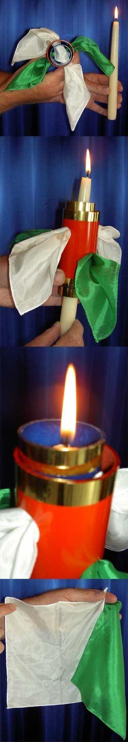 Der Vorführende zeigt eine Kerze und zwei Röhren mit jeweils vier Löcher darin vor. Nun gibt der Zauberkünstler zwei verschiedenfarbige Seidentücher durch die Röhren und zündet die Kerze an. Jetzt nimmt er die Kerze und SCHIEBT SIE LANGSAM DURCH DIE RÖHREN (und somit durch die zwei Seidentücher!) hindurch! Nachdem der Zauberkünstler eine kurze Pause gemacht hat, zieht er die Kerze wieder aus den Röhren, zieht die zwei Seidentücher aus den Röhren und zeigt diese natürlich unbeschadet vor ! Sie können ALLE Requisiten VOR und NACH der Vorführung genaustens zum untersuchen geben, es gibt nichts zu entdecken! Ein starker Durchdringugseffekt der an jeder Stelle des Programms und unter allen Vorführbedingungen eingesetzt werden kann. Sie erhalen die Röhren, Seidentücher und eine ausführliche Anleitung. Die Kerze wird nicht mitgeliefert da Sie fast jede Kerze benützen können.