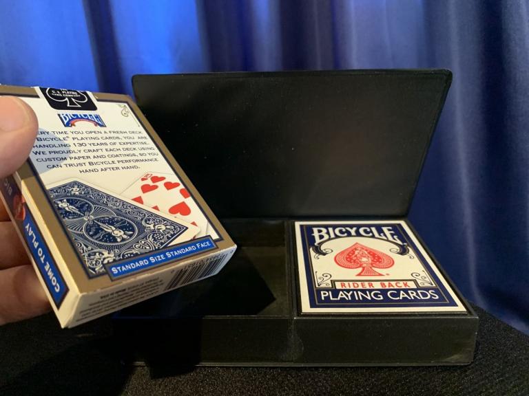 Der Deck Switcher von Fantasio ist ein brillantes Hilfsmittel, mit dem Sie Kartenspiele heimlich blitzschnell und ohne Fingerfertigkeit austauschen können. Er eignet sich für Kartentricks sowie Mentaltricks und kann Close-up oder auf der Bühne eingesetzt werden. In eine kleine, elegante schwarze Schachtel passen zwei Kartenspiele, z.B. ein rotes und ein blaues. Legen Sie in die leere Schachtel zwei Spiele oder nur eines hinein und schliessen Sie den Deckel. Wenn Sie ihn dann wieder öffnen, sind die oder das Kartenspiel(e) ausgetauscht! Verwenden Sie beliebige Poker-Kartenspiele, wie zum Beispiel von Bicycle. Sie erhalten die schwarze Schachtel mit einer deutschen und englischsprachigen Anleitung.