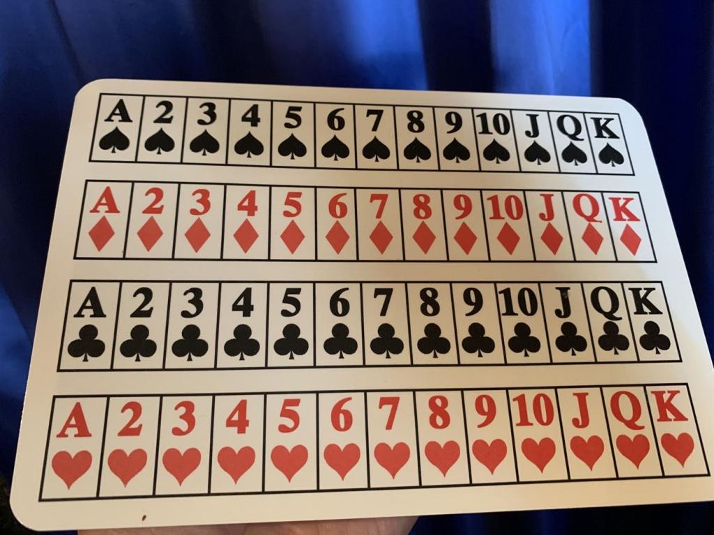 Ein Zuschauer wird gefragt, ob es nicht ein Wunder wäre, wenn die Riesenkarte, die Sie in der Hand halten, exakt mit einer von ihm gedachten Karte übereinstimmen würde. Der Zuschauer bezweifelt dies und nennt eine Karte. Sie drehen dann die Riesenkarte um. Darauf sind alle 52 Karten eines Spiels abgebildet, was die Zuschauer zwar mit Lachen, nicht aber mit Verwunderung zur Kenntnis nehmen. Sie bieten nun eine Wiederholung des Effekts an, nur markieren Sie diesmal vorher verdeckt einen der 52 Kartenwerte mit einem Filzstift. Der Zuschauer nennt abermals seine gedachte Karte. Sie drehen jetzt die Riesenkarte um, und tatsächlich ist diesmal die gedachte Karte mit einem Kreuz markiert. Das Kreuz kann weggewischt und der Effekt wiederholt werden. Sensationell!