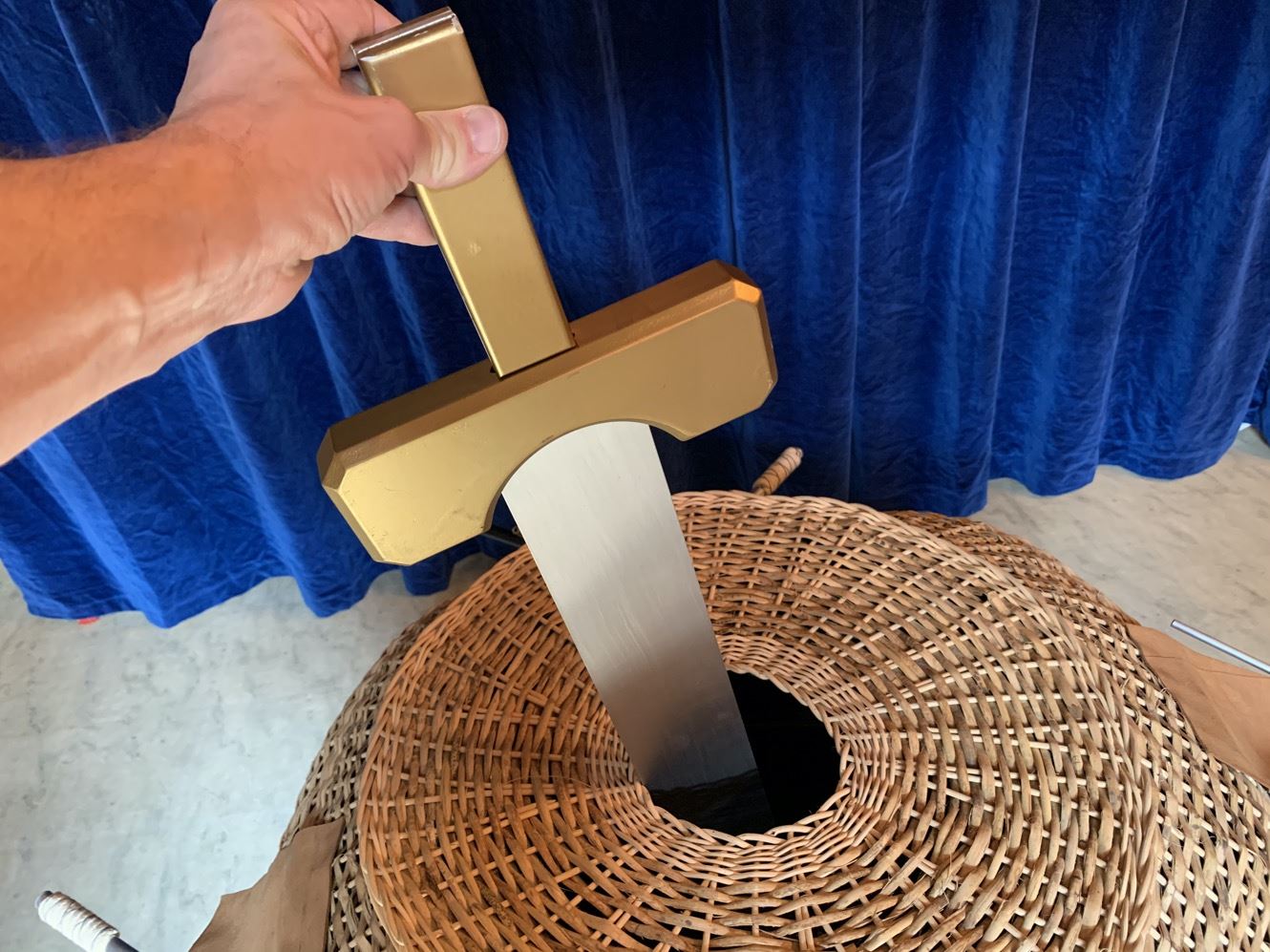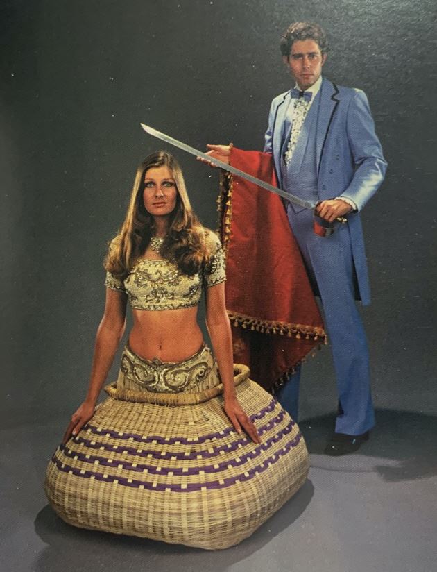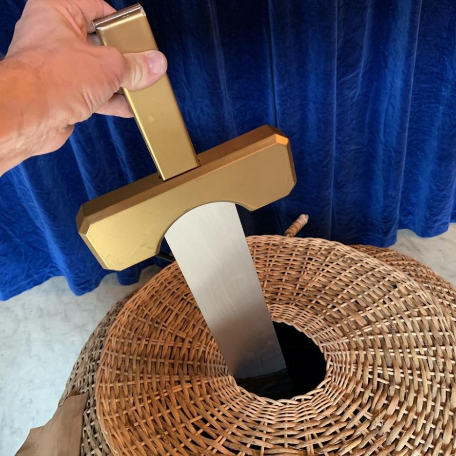 Ein wirklicher Klassiker und immer wieder unerklärlich! Ein zierlicher handgeflochtener Korbdeckel steht auf einem kleinen rollbaren Tisch. Ihre Assistentin steigt ganz in den Korb hinein kaum zu glauben, dass sie da hineinpasst! Mit mehreren Degen oder wahlweise brennenden Fackeln durchbohren Sie nun den Korb Ihren Zuschauern stockt der Atem! Das kann doch nicht sein, nicht bei hellem Licht auf offener Bühne oder sogar umringt! Aber glauben Sie uns, es funktioniert! Sie ziehen nun die Degen bzw. Fackeln wieder aus dem Korb heraus. Absolut fassungslos dürfte Ihr Publikum reagieren, wenn Sie sich dann auch noch selber für einen Moment in den Korb stellen! Nachdem Sie wieder herausgestiegen sind, entsteigt auch Ihre Assistentin unverletzt dem Korb.