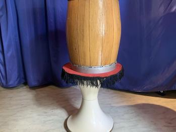 Das ist ein Supereffekt für all jene Zauberkünstler, die umringt im Parkett arbeiten. Auf einem kleinen Podest steht ein grosses Fass,