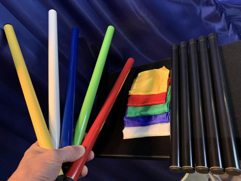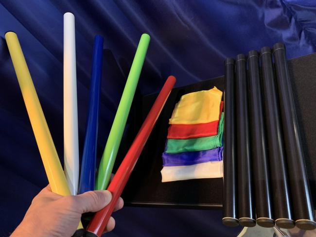 Der Mentalist zeigt fünf verschiedenfarbige Sticks aus Kunststoff (Gelb, Weiss, Blau, Grün, Rot) und fünf schwarze, verschliessbare Kunststoffbehälter. Während sich der Vorführende abwendet, gibt ein Zuschauer je einen der fünf Sticks in die fünf Behälter und verschliesst diese. Sofort ist der Magier in der Lage, die korrekte Farbe der Sticks in jedem der Röhren zu nennen!