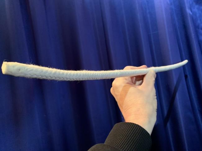 Effekte: Das Seil wird starr und liegt waagrecht zwischen den Fingern; fast senkrecht stehen lassen; bei Anpusten fällt es schlaff zusammen.