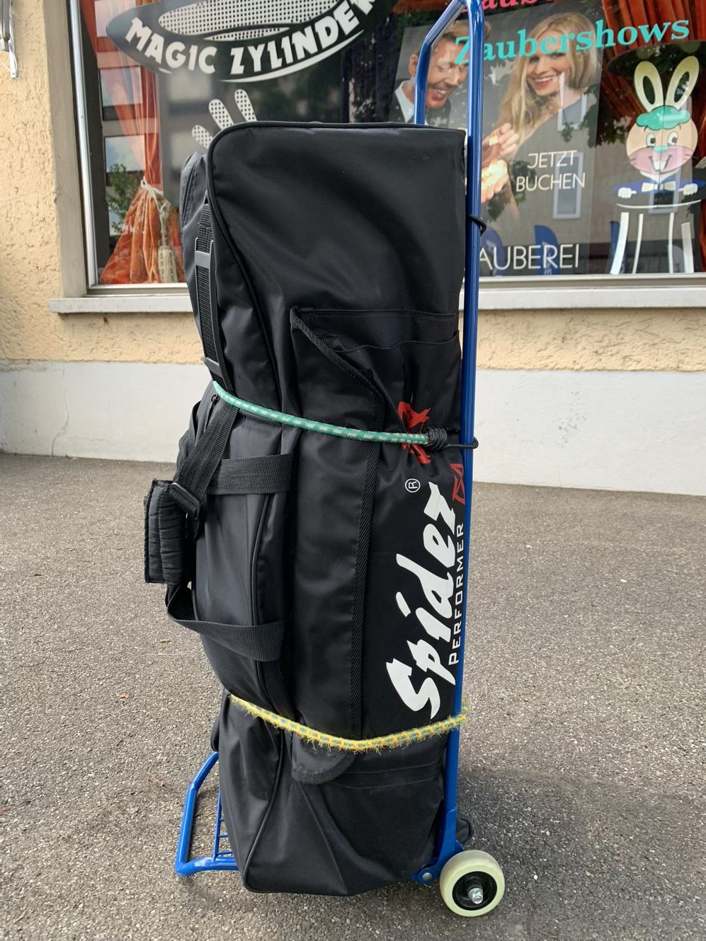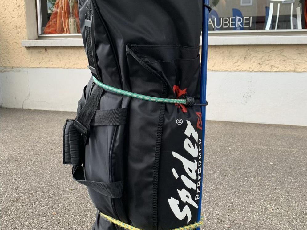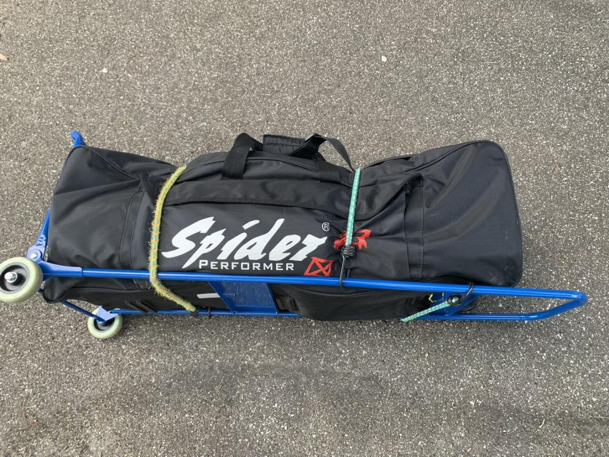 Auspacken: Alles in stabiler Spidertasche mit Rollen – sicher und transportfreundlich.