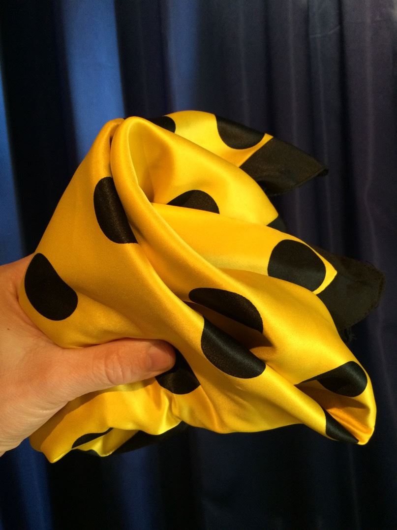 Diesen Effekt müssen Sie gesehen haben! Schön, verblüffend und farbenfroh! Sie halten ein 60 x 60 cm grosses schwarzes Tuch an einem Zipfel. Dann werfen Sie eine Handvoll grosser weisser Papierpunkte in die Luft und halten das Tuch in den Punkteregen. Sie bewegen es hin und her, und wie durch Zauberei befinden sich die weissen Punkte nun fest rundum auf dem Tuch und fallen trotz Schütteln nicht ab! Doch das ist nicht alles: Sie greifen jetzt unter das Tuch und produzieren ein wunder-schönes grosses Federblumenbouquet mit zehn gelben Blüten! Dieser Höhepunkt ist schon fast perfekt. Doch nun streichen Sie mit dem gelben Blumenstrauss einmal über das schwarze, weissgepunktete Tuch, und im gleichen Moment färbt es sich in ein gelbes mit schwarzen Punkten! Doch auch das ist noch nicht alles: Aus dem gelben Tuch mit den schwarzen Punkten produzieren Sie blitzartig einen gelben Schirm mit schwarzen Punkten. Danach falten Sie das gelbe Tuch mit den schwarzen Punkten klein zusammen und es verwandelt sich in einen grossen gelben Blumenstrauss! Ohne komplizierte Handhabung! Umringt leicht und elegant vorzuführen! Im Gegensatz zu einigen anderen Punktetüchern und -schirmen sind hier die Punkte aufgedruckt. Abfallen, Vergilben oder Lösen der Punkte gibt es selbst nach Jahren nicht. Dieses Kunststück ist ein Knaller und funktioniert wie von selbst. Sie werden immer Freude daran haben! Sie erhalten den PUNKTESCHIRM komplett mit einem schwarzem und einem gelben Punktetuch, zwei Blumenbouquets, einem gelben Punkteschirm, einem Pack mit weissen Konfetti und einer ausführlichen Gebrauchsanleitung.