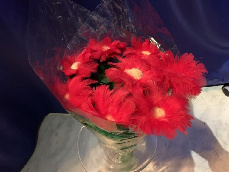 Lieferung: kompletter Strauss (Höhe 50 cm, Durchmesser ca. 30 cm) einschliesslich 23 Blüten (je ca. 9 cm). HAWAII ist aus echten Vogelfedern gefertigt – Verarbeitung und Farbenpracht einmalig, beste Qualität! Eine gelbe Blüte fehlt; das Kunststück ist problemlos mit sieben gelben Blüten vorführbar.