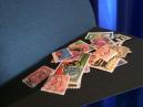 Sie bitten eine Zuschauerin zu sich, die Sie assistieren soll. Sie blättern dann den Zuschauern ein leeres Markenalbum vor und geben es Ihrer Assistentin in die Hand. In die andere Hand bekommt sie viele einzelne Briefmarken. Sie nehmen jetzt eine schwarze Tüte, klappen sie auf und zeigen sie von beiden Seiten leer. Dann falten Sie sie wieder zusammen, und die Assistentin gibt die Briefmarken hinein. Und nun wird gezaubert! Sie öffnen wieder die Tüte, zeigen sie abermals von beiden Seiten leer doch die Briefmarken sind alle verschwunden! Wenn Sie nun das Markenalbum durchblättern, das während der ganzen Zeit von der Assistentin festgehalten wurde, sind die Briefmarken alle wunderschön im Album eingeklebt! Sie erhalten alle Requisiten in einer luxuriösen Ausführung. Das Album aus Leinen und Karton habe ich in einer Buchbinderei für Sie anfertigen lassen, und zwar in einer limitierten Auflage von weniger als 12 Stück. Greifen Sie darum zu!